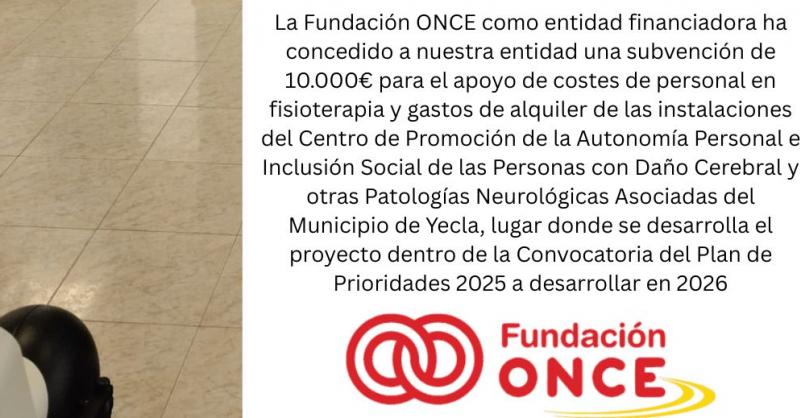 La Fundación ONCE, como entidad financiadora, ha concedido a nuestra organización una subvención de 10...